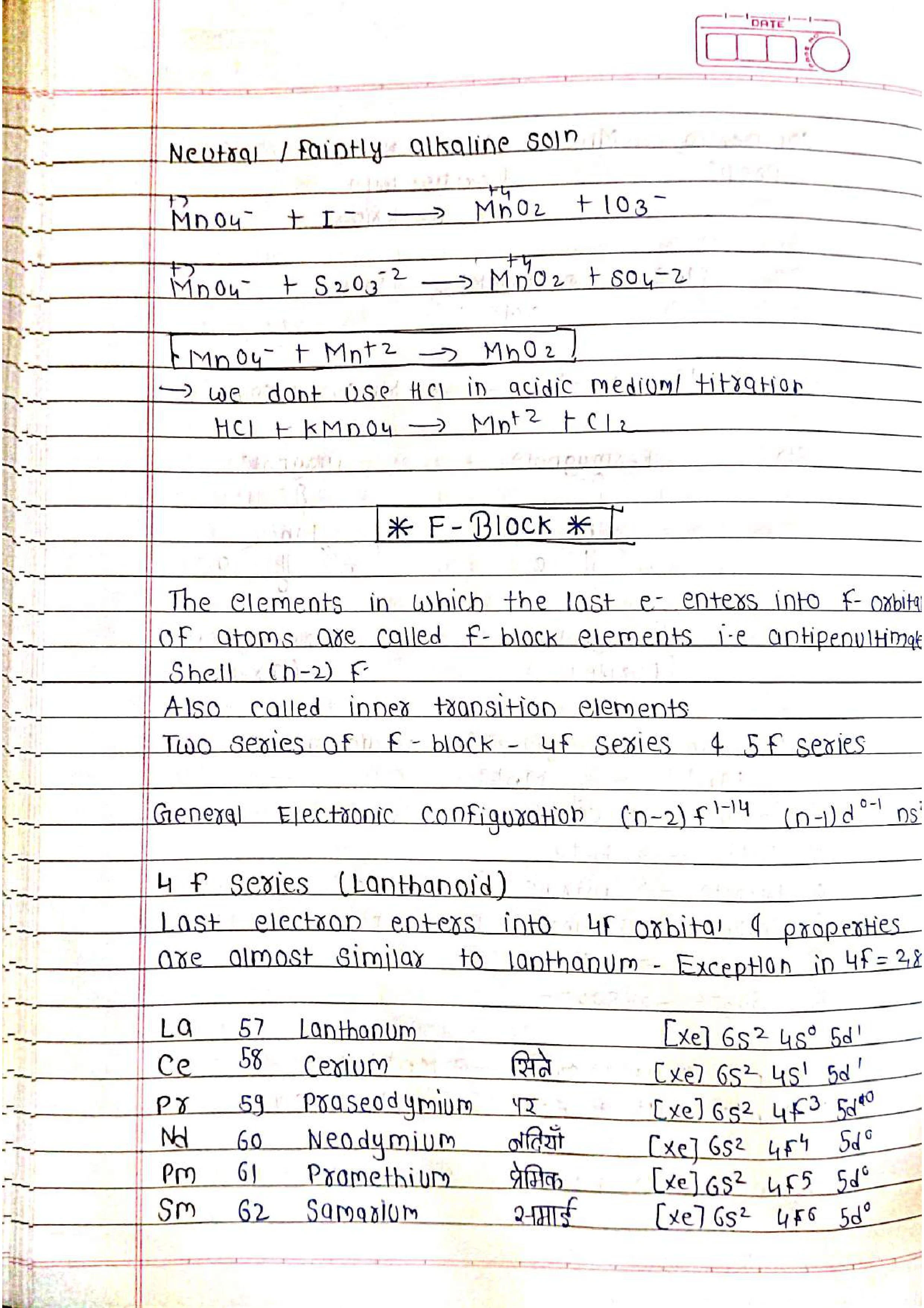 ➭ Lanthanide Contraction: A gradual decrease in atomic and ionic radii across the lanthanide series due to increased nuclear charge.